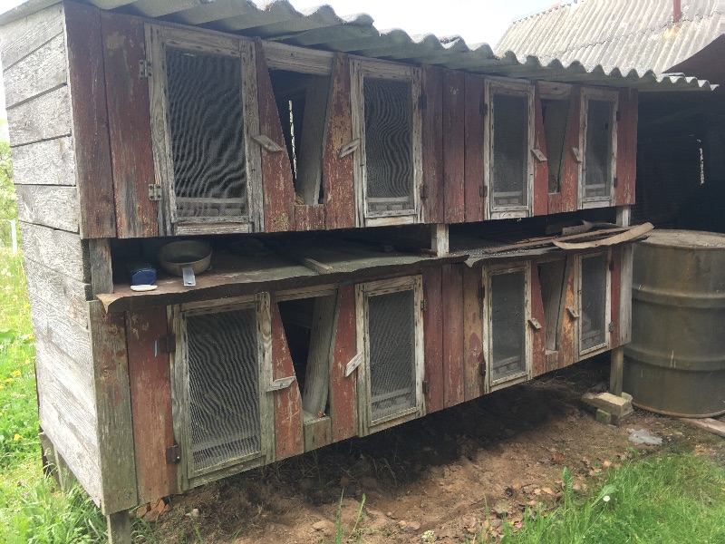 Клетка для содержания кроликов. Деревянная,двухяростная, почти не использовалась. 2.5 метра длиной, 2 метра высотой. Накрыта шифером.