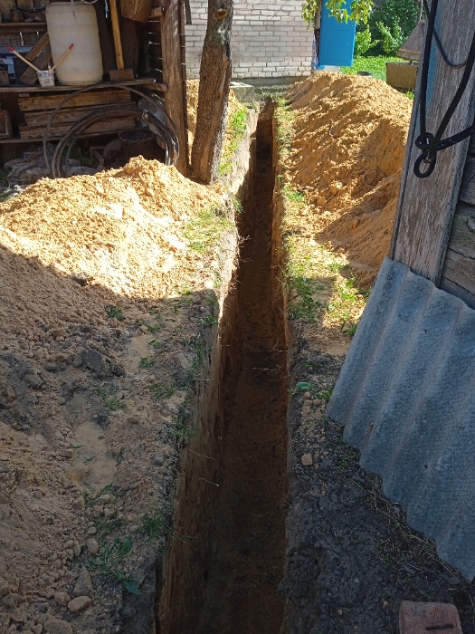 Капаем траншеи под воду под канализацию,вкапываем кольца под канализацию,колодцы.