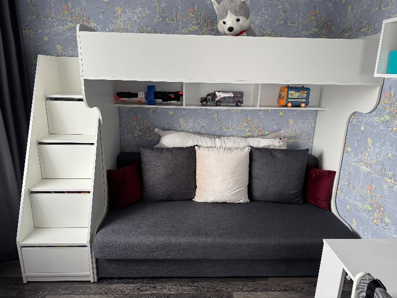Продаю двухъярусную кровать с диваном + ступеньки в отличном состоянии