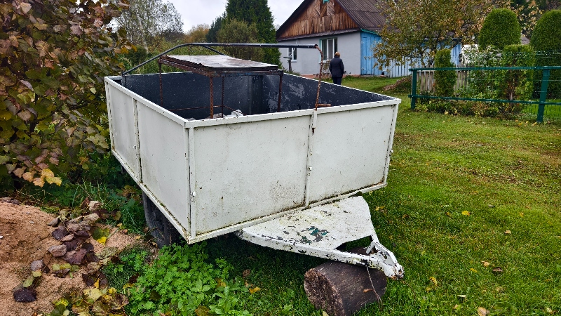 Прицеп "Зубренок", с надёжно сделанными самодельными бортами из хорошего металла. Задний борт открывается. Есть крепление для мотоблока МТЗ. Без переоформления, с документами, с номером. В отличном состоянии.