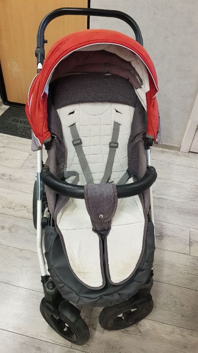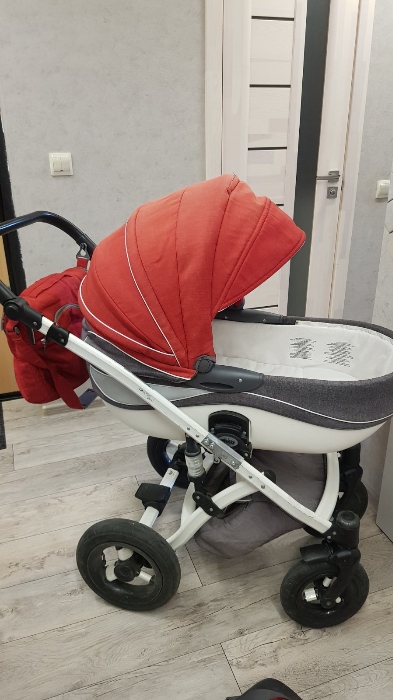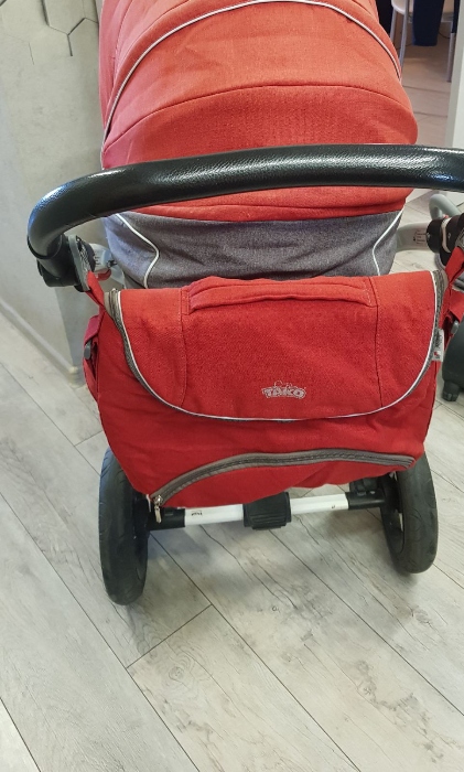 Коляска Tako 2 в 1, Красная +белый+ серый, в комплекте сумка для мамы, дождевик, москитка на люльку и на прогулку тоже имеется самодельная, чехол на ножки. Колеса надувные, идут по бездорожью и снегу отлично, в ремонте не нуждаются. Передние колеса поворотные, можно зафиксировать для езды прямо. Блоки можно устанавливать по ходу движения и против, как удобно. Из основных дефектов: поломалось крепление на раме у коляски там где она складывается пополам при транспортировке, муж скрепил это место надежно, но теперь чтобы сложить коляску, в авто например – нужно сначала открутить болты. Также осыпался кожзам на прогулочном блоке где ножки малыша – сшила чехол из экокожи. Не работает ножной тормоз, разбирали, вроде починили, потом он снова перестал нажиматься. Есть потертости на раме, есть выцветшие участки на ткани капора на прогулке и на люльке, но не сильно заметно. В люльке капюшон фиксируется только в вертикальном положении, либо в горизонтальном, промежуточных нет. Из плюсов коляски: хорошая амортизация, не тяжелая, легкая в управлении, легко чистится ткань (все основные чехлы, сумка, все постирано), ручка коляски регулируемая, капюшон на обоих блоках хорошо закрывает малыша, в прогулке можно дополнительно расстегнуть и удлинить капор , люлька подойдет для крупного малыша, снизу вместительная корзина на молнии. Находится в Боровке-1, самовывоз.