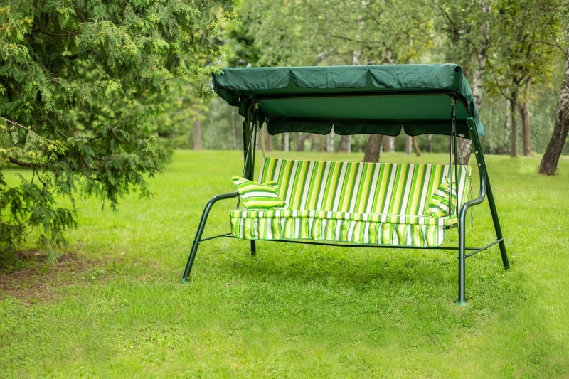 Габаритные размеры изделия (д х ш х в), мм: 2310х1260х1478 Максимальная нагрузка, кг: 210 Размеры упаковки: 526х186х1966 Габаритные размеры сиденья,спинки и тента (длина х ширина), мм: размеры сиденья: 1706х497 размеры спинки: 1706х497 размер тканевого тента:1840х1020 Каркас: труба стальная ?45х1,4мм; полимерное покрытие; полка - 2 шт. Мягкий элемент: ткань 45% п/э – 55% хлопок, плотность 108-111г/м2, наполнитель мягкого элемента (листовой поролон 50мм), наполнитель подушек (крошка поролона). Подушки: 2шт. Тент: ткань с водоотталкивающей отделкой 100% п/э плотность 120г/м2. Регулировка спинки: осуществляется звеньями цепи на требуемый угол наклона. Вес изделия: 36 ru/