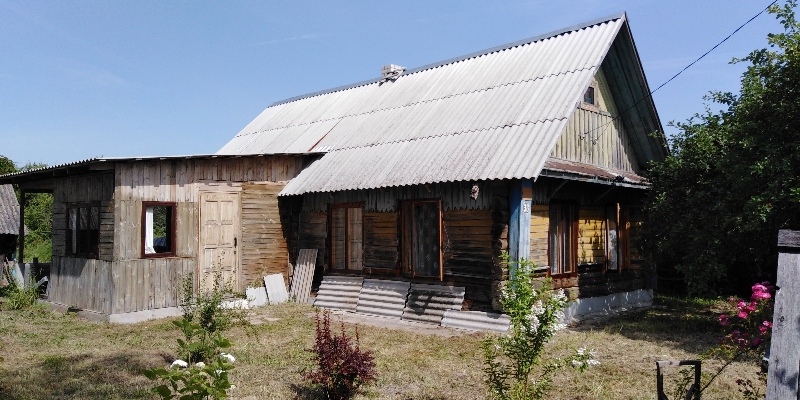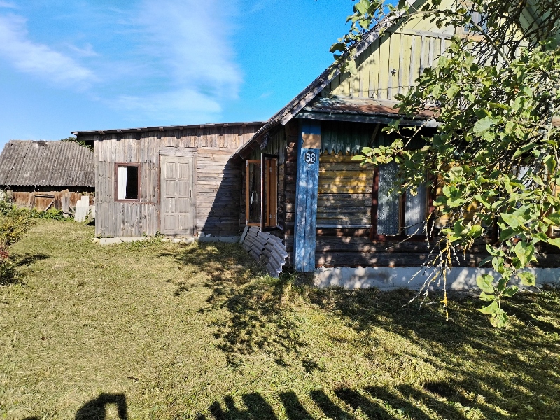 Дом с деревянной верандой и небольшой террасой (план прилагается). Выполнены работы по обновлению крыши и стропил, поставлены новые печи, деревянные окна, пол залит стяжкой. Требуется внутренняя и внешняя отделка. Электричество, Газ – баллон. Удобства – во дворе. Рядом с домом колонка водоснабжения. Есть колодец. . Площадь дома 42 кв.м. (без учета веранды).