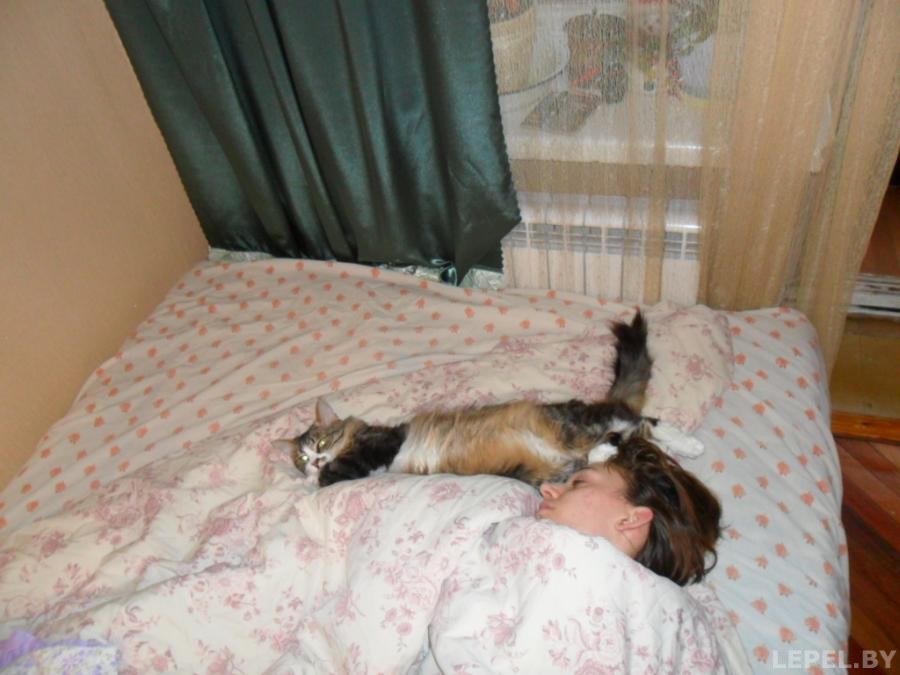 Когда проснется, уговор: ей не чего не говорить. А то будет подкалывать, что у меня лапы пахнут!!
