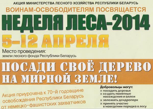 Нынешнюю «Неделю леса» приурочили к 70-й годовщине освобождения Беларуси от фашистской оккупации.