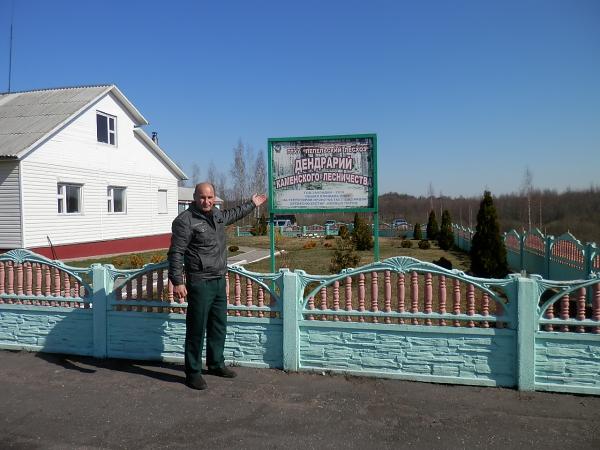 Водитель лесхоза Курусёнок Виктор, инженер по лесовосстановлению Наталья Передня и заместитель директора лесхоза Александр Клундук повезли меня в лес, дабы я воочию убедился, что «Неделя леса» на Лепельщине проходит действительно на делянках, а не на бумаге. Но сначала заехали в контору Каменского лесничества. А там лесничий Михаил Ворошко мне дендрарий показал прямо в офисном дворе.
