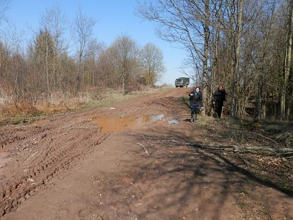 …Проехали Ладосно. Но до Курмелёвки не доехали. Свернули влево. По полю глину кое-как месили, а вот перед грязью стали - не одолеет её машина. Дальше пешком пойдём.