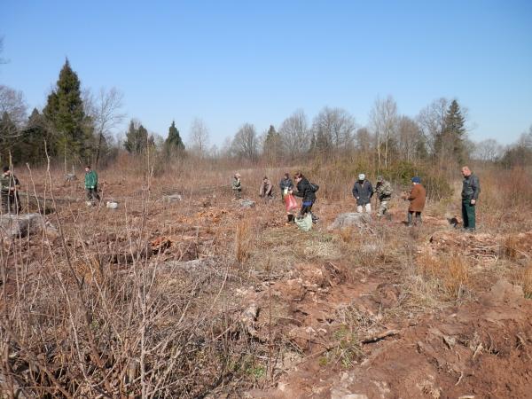 Вооружаемся кто чем: граблями, топорами, мешками, ножами, и начинаем корчевать, выгребать, вырубать, вырезать, выносить из ямы кусты, малинник, пластиковый мусор, гнилые палки, сучья.