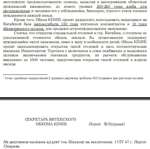 Состояние Лепеля вызвало самый настоящий ужас. Всюду неимоверная бедность, совсем нет электричества. Люди до того оборваны, что в его родных Ходулах и Валиных Туминичах селяне в лучших довоенных обносках ходили. Но, как говорится, поезд ушёл, отказываться от назначения было поздно. Благо, хоть столовка была новая. С обратной стороны в здании железнодорожный вокзал размещался. Временно, поскольку в войну прежний, стоящий напротив примыкания улицы Вокзальной к Железнодорожной (теперь Лобанка и Чуйкова), сожгли партизаны. А зачем Лепелю столовка? Потому что повальный голод был. Врун, скажете, его в 1947 году уже не было. Я не буду доказывать обратное своими убеждениями, дабы не получить обвинение в предвзятости, а молча предъявлю два совершенно секретных документа.