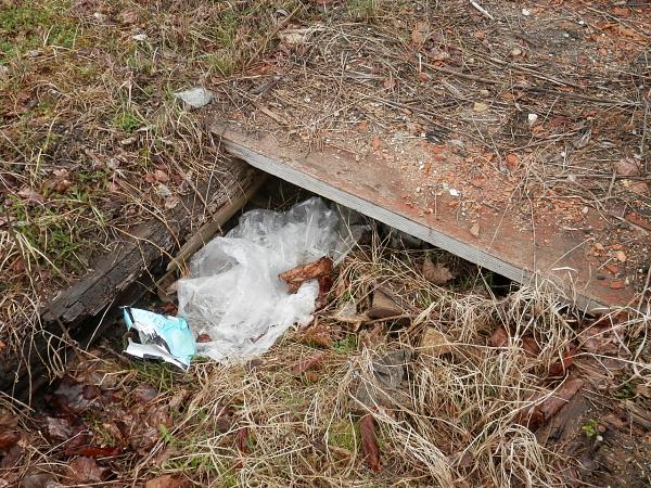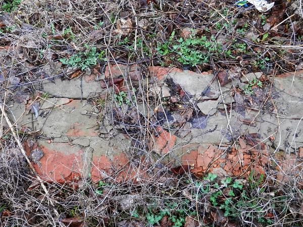 От самой столовки остался только не успевший обрасти землёй верх кирпичного фундамента.