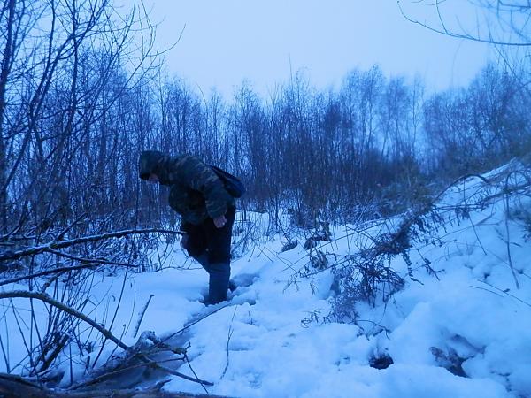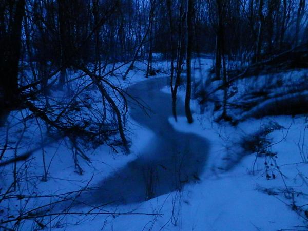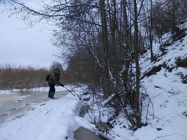 Заросли труднопреодолимы. Копировать кренделя ручьевого русла по льду сподручнее. Правда, местами снег маскирует промоины, но глубина меньше длины моих сапог, дно твёрдое.
