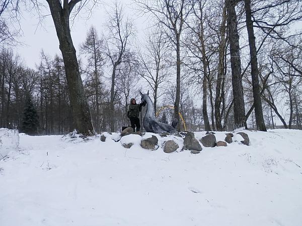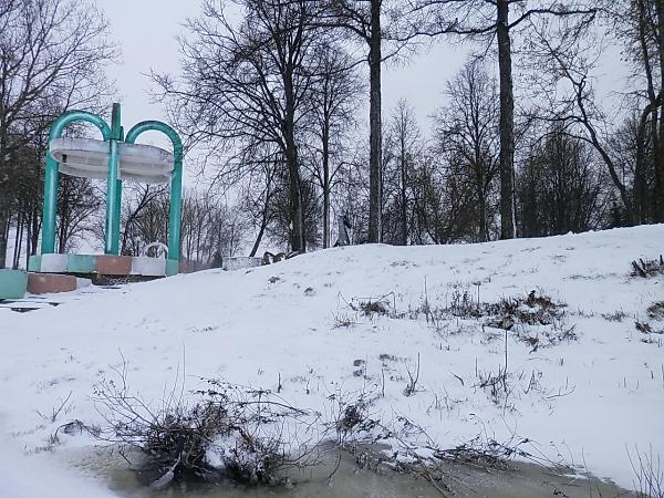 Это я запечатлел только две промоины. А их перед городским парком полным полно. Вот уже и мой друг Цмок Лепельский меня дожидается.