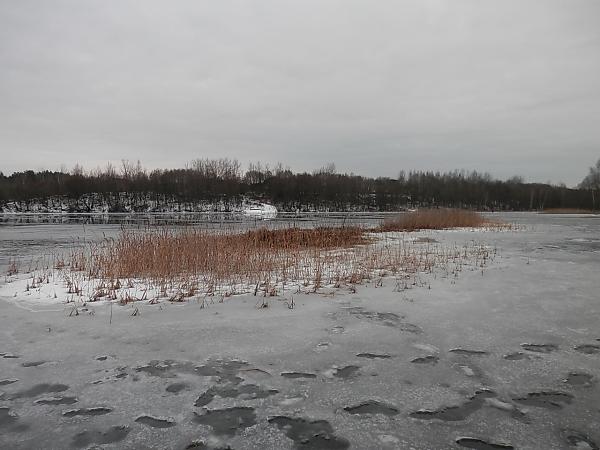 Кстати, о птицах. Кто знает, почему магазин называют Юбилейным? Ну да, потому, что построен он в 1967 году, когда советской власти исполнилось полстолетия… Только под мостом городская граница перебралась на противоположный берег. Изо льда вырастает настоящий остров. Может, кто не знает, что он искусственный? Его образовал сохранившийся отрезок дамбы Березинской водной системы.