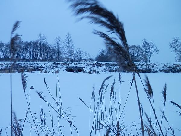 Щучий ров воспринимаю как избавление от лазания по дебрям. Сейчас он нырнёт в двойной трубопереезд под дорогой в Старый Лепель, и дальнейший путь проляжет по льду Лепельского моря.
