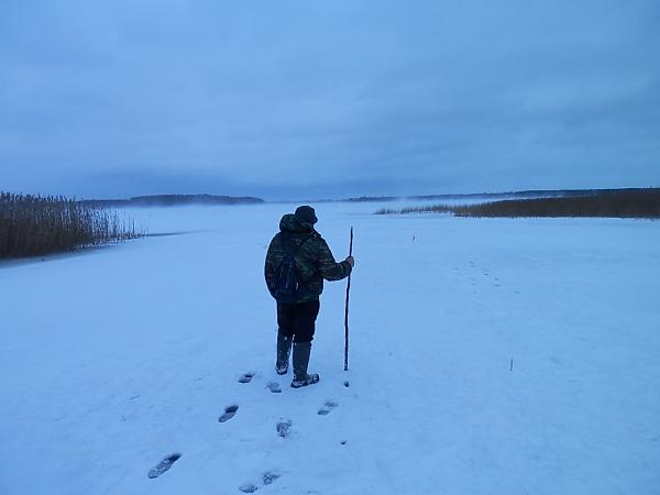 Коле почти 67 лет, но он любит с удочкой побродить по морскому льду. Про улов спрашивать постеснялся, посчитав, что неудобно будет рыболову признаваться о нулевом результате. Последний раз с близкого расстояния окидываю взглядом замороженную Беленицу.
