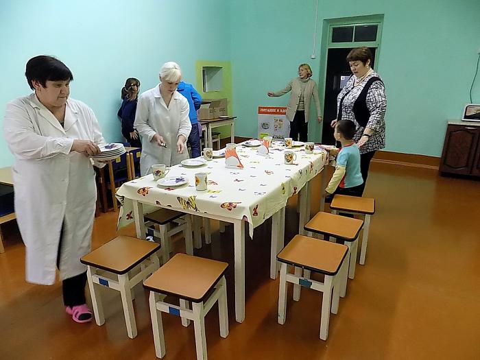 Стол действительно уже сервируют сообща и работники, и воспитанники приюта.
