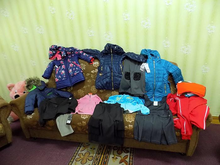 Не загромождая головы читателей лишней цифирью, назову лишь ту, которая показалась интересной мне. Держится приют практически на частных пожертвованиях. Медицинская компания «ЛОДЭ» кроме разовых вливаний в учреждение ежемесячно перечисляет Центру три миллиона рублей. За них покупается всё необходимое, начиная с туалетной бумаги. Предприниматель Василь Карабань бесплатно перетягивает обветшавшее покрытие мебели, организовывает сладкие столы на праздники. Как всегда большую помощь оказывает предприниматель Николай Лебедев. Всех вновь поступивших шестерых воспитанников он полностью одел и обул (одна лишь зимняя куртка тянет на миллион). Иерей Сергий Лешкевич (церковь возле вокзала) крестит некрещеных детей, поставляет всяческие угощения, фрукты… Андрей Анискевич, директор Религиозной миссии «Благотворительное католическое общество Каритас» Витебской епархии Римско-католической церкви, пожертвовал приюту 40 миллионов рублей. На них заказали кухонную мебель, 11800000 рублей пошло на закупку одежды. Она заполнила несколько коробов. Лишь незначительная часть вместилось на диван, чтобы сфотографировать.